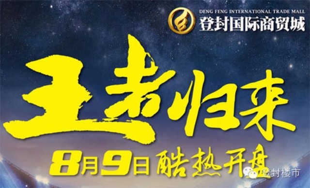 8月9日,不可错过的投资机会!谁先动,谁先富!王者归来,登封国际商贸城8月9日酷热开盘!